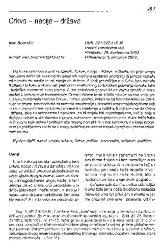 Bodrožić, Ivan (2003) Crkva-nacija-država [Church - Nation - State]. Nova Prisutnost, 1 (2). pp. 257-264. ISSN 1848-8676
