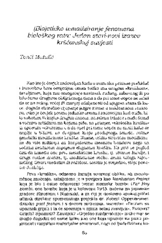 (Bio)etičko tematiziranje fenomena biološkog rata: Jedan stari-novi izazov kršćanskoj savjesti [(Bio)Ethical Thematization of the Phenomenon of Biological War: An Old - New Challenge to Christian Conscious]