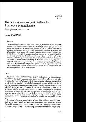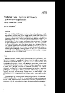 Bozanić, Anton (1997) Kultura i vjera - korijeni civilizacije i put nove evangelizacije [Culture and Faith - The Roots of Civilisation and the Path to a New Evangelisation]. Obnovljeni život: časopis za filozofiju i religijske znanosti, 52 (6). pp. 521-530. ISSN 1849-0182