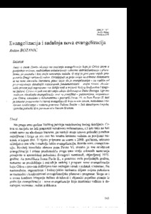 Bozanić, Anton (1998) Evangelizacija i sadašnja nova evangelizacija [Evangelisation and the Current New Evangelisation]. Obnovljeni život: časopis za filozofiju i religijske znanosti, 53 (2). pp. 141-150. ISSN 1849-0182