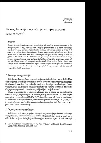 Bozanić, Anton (1999) Evangelizacija i obraćenje - trajni procesi [Evangelisation and Conversion - A Lasting Process]. Obnovljeni život: časopis za filozofiju i religijske znanosti, 54 (1). pp. 111-115. ISSN 1849-0182
