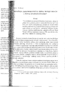 Sadašnje zakonodavstvo Reda manje braće i nova evangelizacija [Today's Legislation of the Little Brothers of Francis Order and New Evangelization]