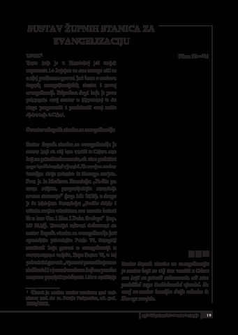 The author describes the system of parish stations created inside a parish to help bring back the traditional "nominal" Christians back into the active Church. All this is part of the new evangelization. The article discusses the author's personal experience with parish stations because he is part of the first Croatian parish to start this system in order to proclaim Gospel and bring Christians back to the Church.